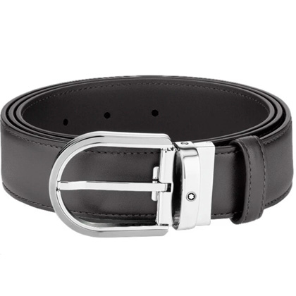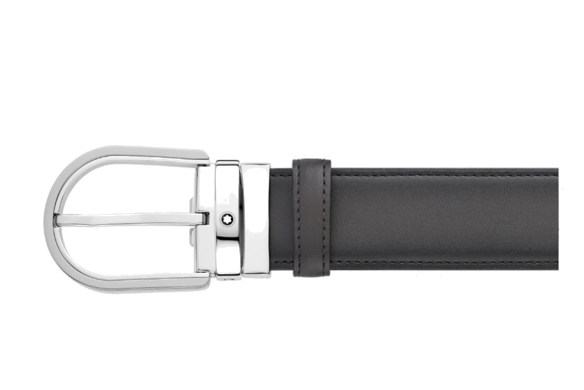 Кожаный ремень с пряжкой в форме подковы серого цвета 35 мм от магазина премиальных ручек Premium Pens в Майкопе.